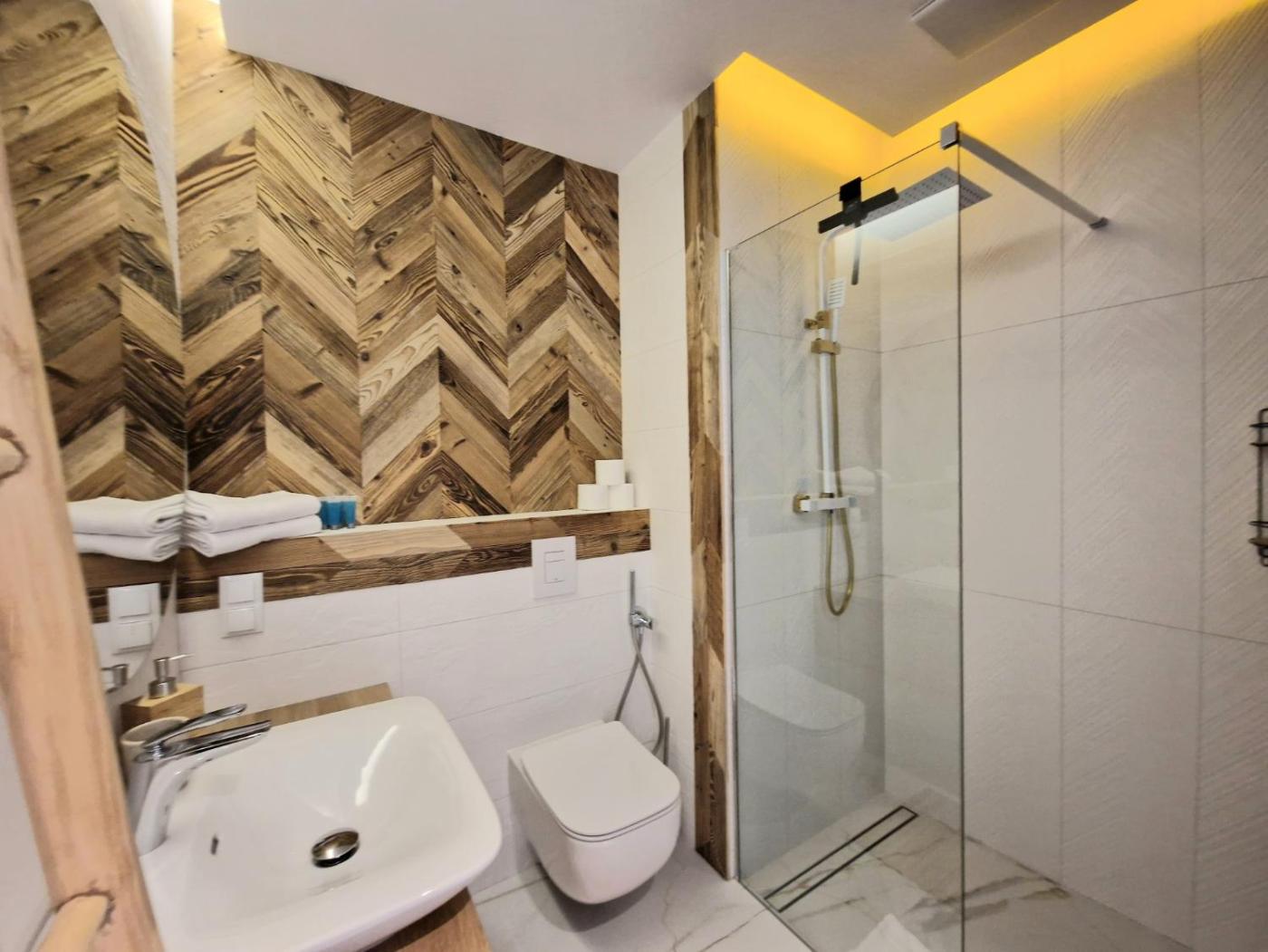 Apartment with Entresol. Featuring a private entrance, this apartment comprises 1 living room, 1 separate bedroom and 1 bathroom with a walk-in shower and a hairdryer. Meals can be prepared in the kitchenette, which is equipped with a stovetop, a refrigerator, a dishwasher and kitchenware. The apartment provides a flat-screen TV with cable channels, a tea and coffee maker, a seating area, a wardrobe as well as ancourtyard view. The unit offers 2 beds. Apartament - 4 osobowy. Powierzchnia pokoju ok.: 44 mkw. ;