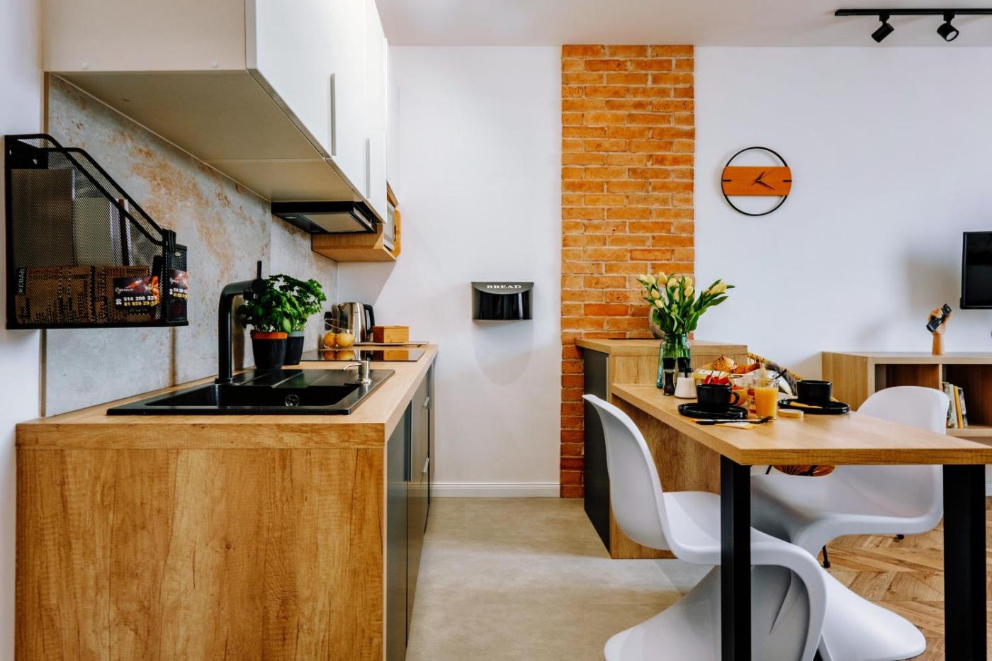 Apartament z 1 sypialnią. Meals can be prepared in the well-fitted kitchenette, which has a stovetop, a refrigerator, a microwave and a tea and coffee maker. This apartment offers heating, a flat-screen TV and city views. The unit has 2 beds. Apartament - 4 osobowy. Powierzchnia pokoju ok.: 33 mkw.