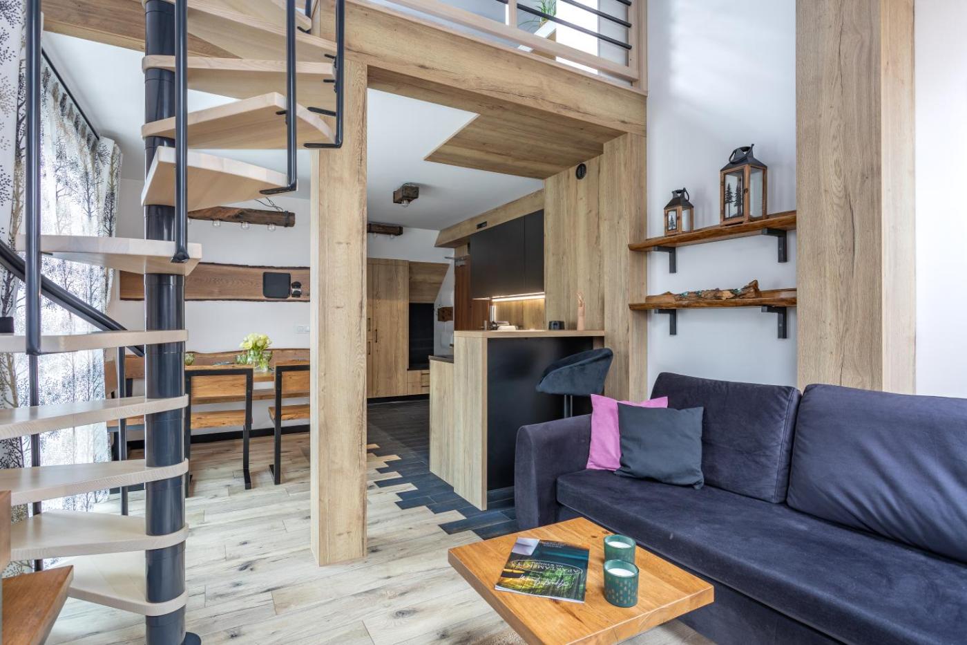 Apartament dwupoziomowy. This apartment comes with 1 living room, 1 separate bedroom and 1 bathroom with a shower and a hairdryer. In the fully equipped kitchenette, guests will find a stovetop, a refrigerator, a dishwasher and kitchenware. This apartment has a coffee machine, heating and a flat-screen TV. The unit has 3 beds. Apartament - 5 osobowy. Powierzchnia pokoju ok.: 39 mkw.