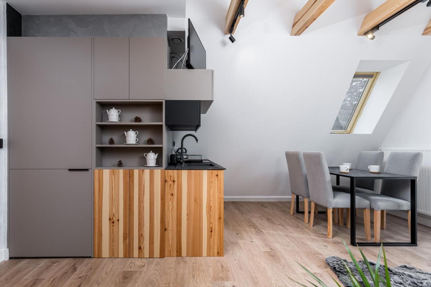 Apartament. Apartament ten mieści salon, oddzielną sypialnię oraz łazienkę z kabiną prysznicową i bezpłatnym zestawem kosmetyków. W kompletnie wyposażonym aneksie kuchennym przygotowano płytę kuchenną, lodówkę, zmywarkę do naczyń i przybory kuchenne. W apartamencie znajduje się część wypoczynkowa, jadalnia, szafa oraz telewizor z płaskim ekranem i dostępem do platform streamingowych. Dla Gości przygotowano zestaw do parzenia kawy i herbaty. W tej opcji zakwaterowania zapewniono 2 łóżka. Apartament - 4 osobowy. Powierzchnia pokoju ok.: 32 mkw. ;